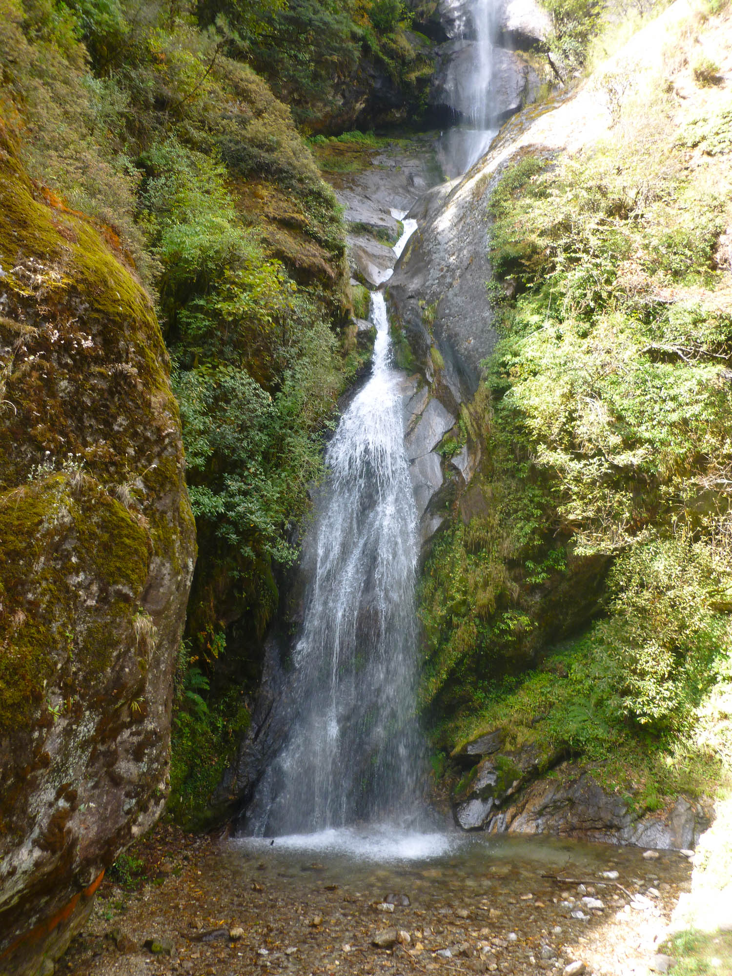 A ribbon-like waterfall across the valley