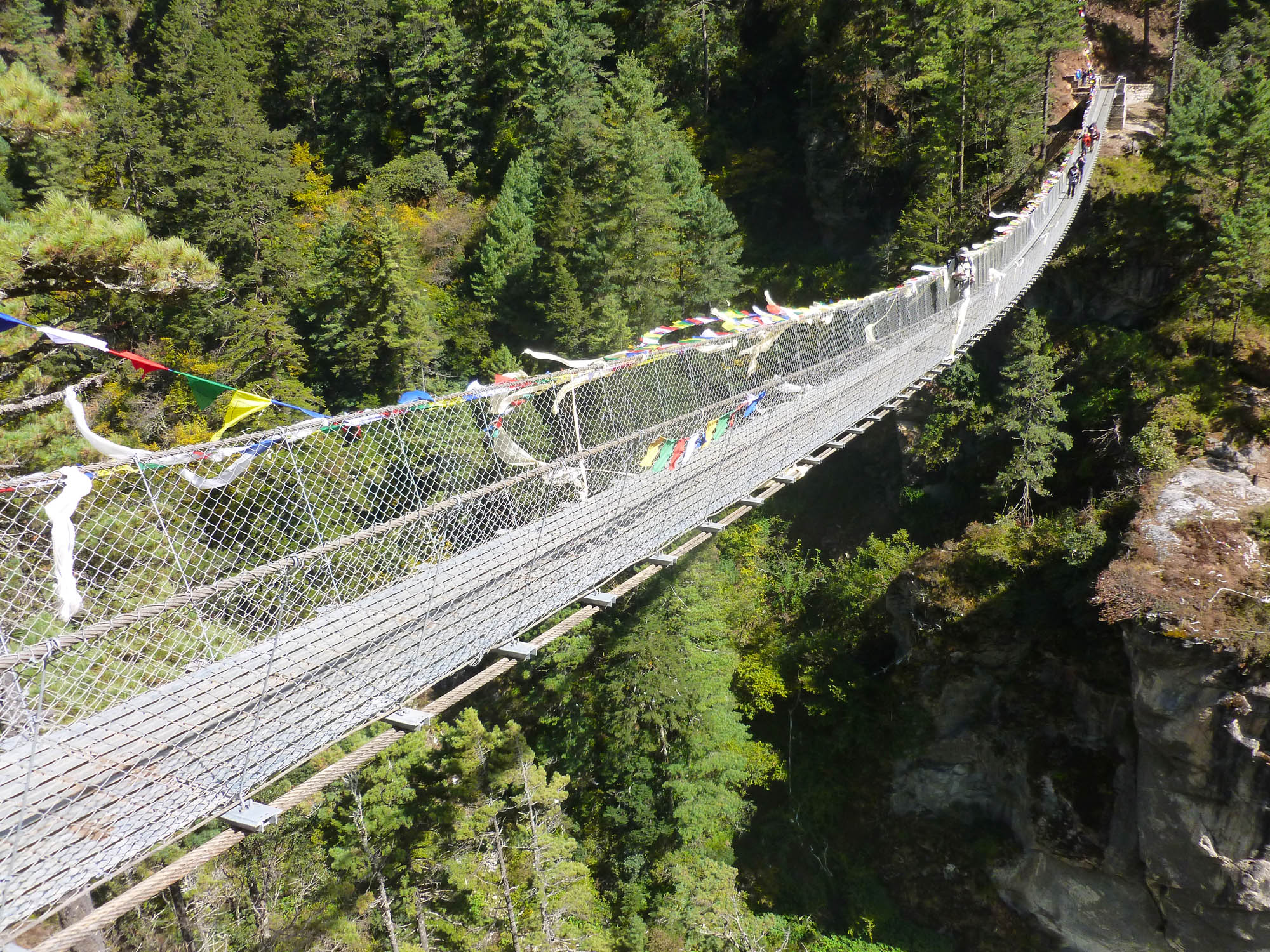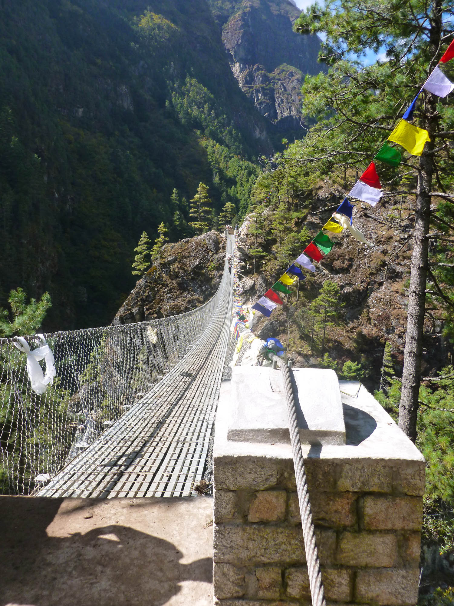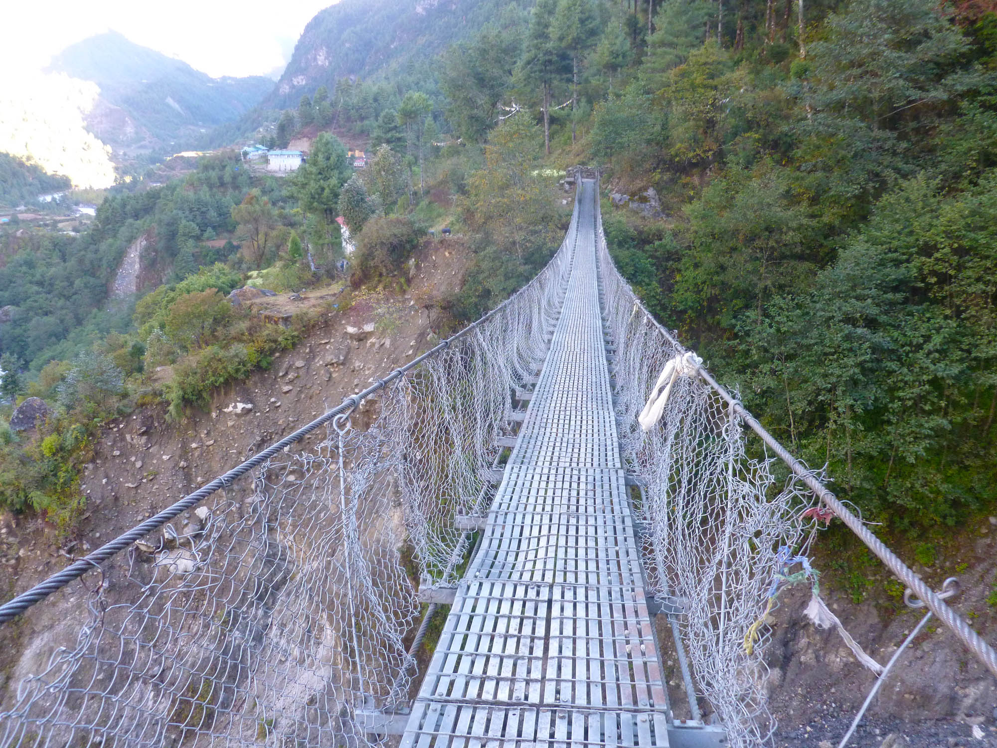 The suspensions bridges at the base of the hill up to Namche Bazaar
